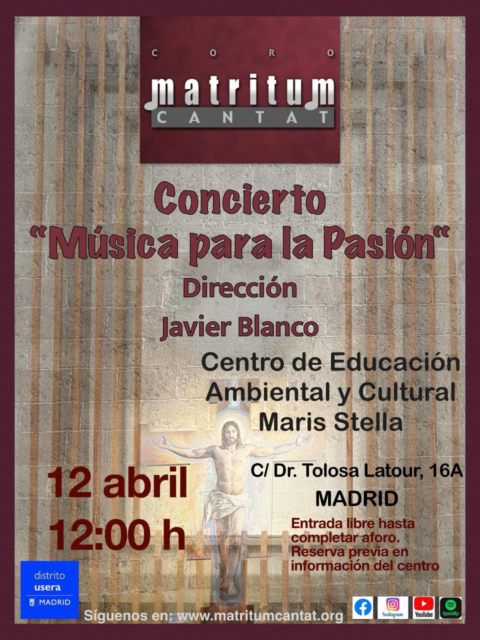 Concierto de Pascua Fecha y hora: Domingo, 1 jun 202520:00 Lugar:Iglesia de San Federico C. del Alcalde Martín de Alzaga, 21 Madrid Mapa no disponible