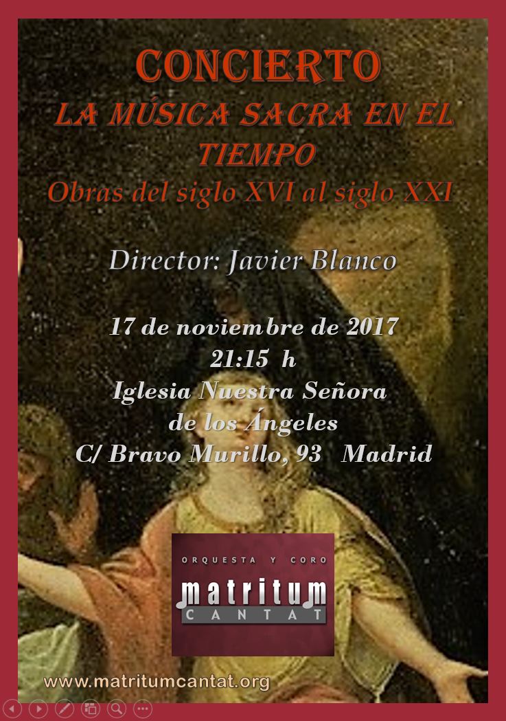 Concierto música sacra – Iglesia Nuestra Señora de los Ángeles Fecha y hora: Viernes, 17 nov 201721:15 Lugar:Iglesia Nuestra Señora de los Ángeles C/ Bravo Murillo, 93 Madrid Cargando mapa.... Iglesia Nuestra Señora de los ÁngelesC/ Bravo Murillo, 93 - MadridEventos 40.445744 -3.7041378000000122